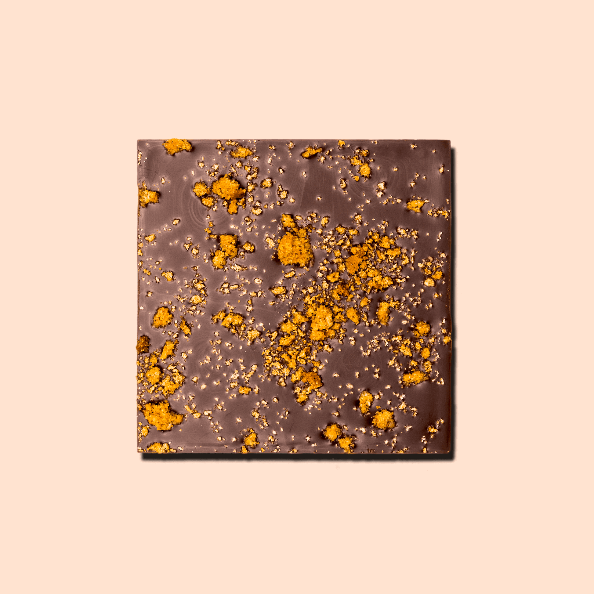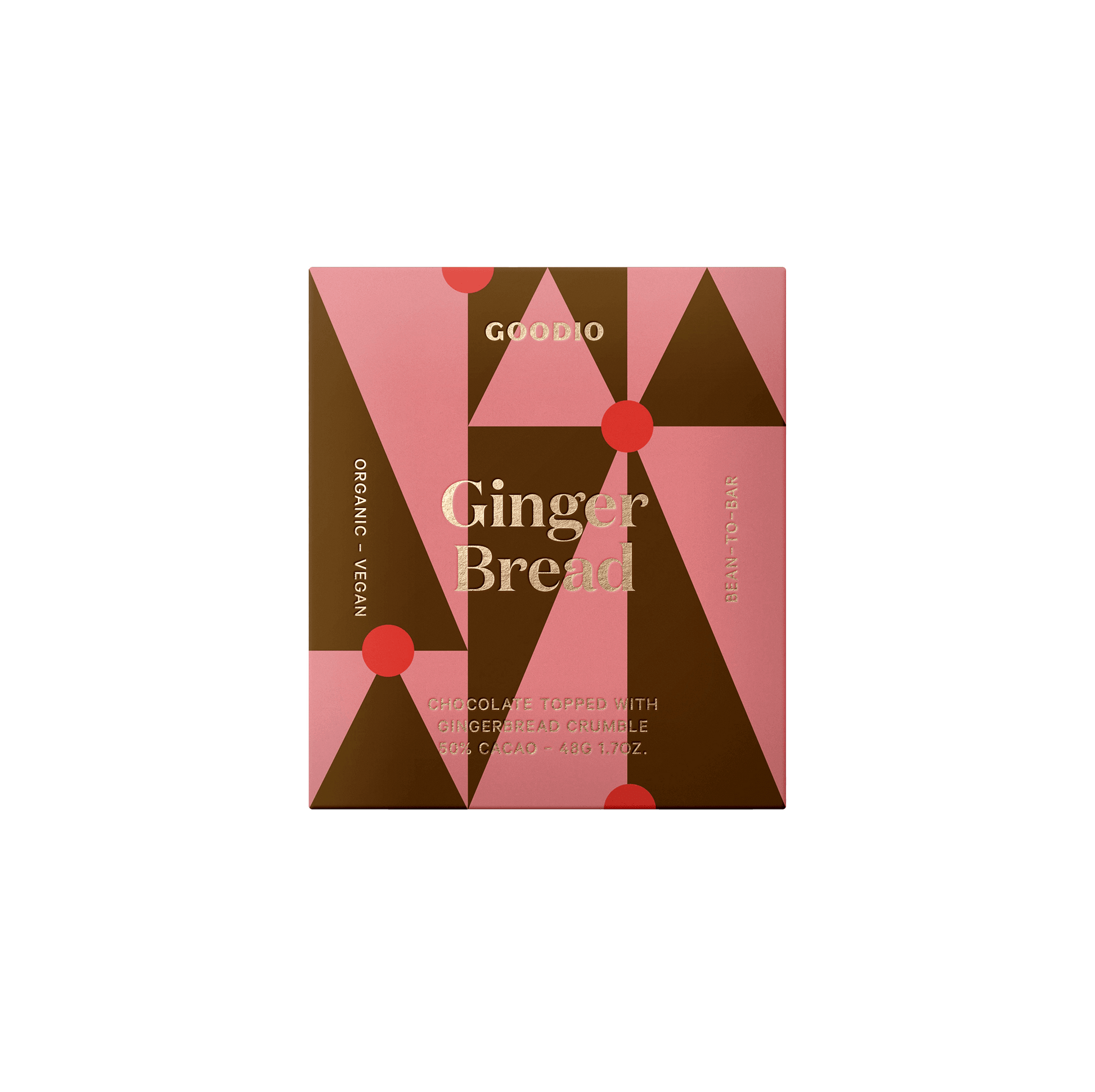 We sprinkled the best parts of gingerbread boy on to this fine craft chocolate. Yummy Holidays!